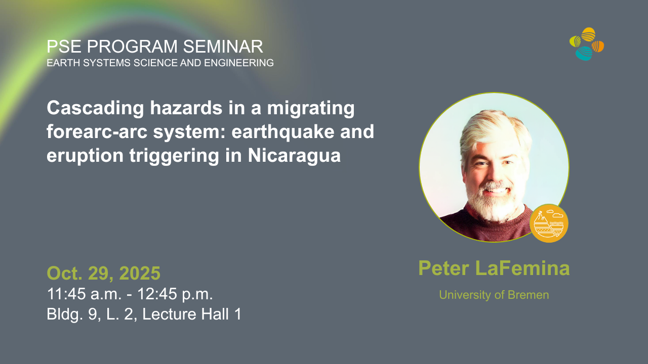 Prof Dr Peter LaFemina received a BSc in Geoscience from Hartwick College, with an emphasis on tectonics and structural geology and an MSc in Geoscience from Florida International University where he studied changes in soil degassing at Telica and Cerro Negro volcanoes, Nicaragua. This was followed with a position as Research Scientist at the Center for Nuclear Waste Regulatory Analyses at Southwest Research Institute where he help develop potential field mapping techniques to investigate magmatism and tectonics, and the seismic and volcanic hazard assessments for critical facilities. He then received a PhD in Marine Geology and Geophysics at the University of Miami – Rosenstiel School of Marine & Atmospheric Sciences with an emphasis on investigating plate boundary zone deformation using space geodetic techniques. He was awarded the prestigious Walton Smith award for best PhD. After sixteen years as a Professor of Geosciences at The Pennsylvania State University, he moved to the Alfred Wegener Institute – Helmholtz Center for Polar & Marine Research and the University of Bremen. Today, he strives to improve our understanding of tectonic and magmatic processes at active plate boundaries and their impacts on society using terrestrial and satellite geodetic techniques through collaboration with students and national and international colleagues.