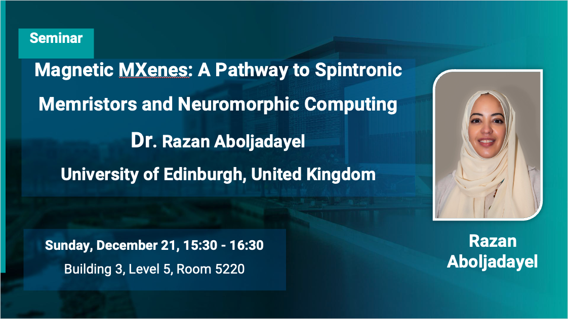 Razan Aboljadayel, is a Postdoctoral Research Fellow at the University of Edinburgh, specialized in condensed matter physics with a focus on magnetic thin films and devices for next-generation spintronics applications and energy-efficient computing. Her work combines lab-based methods and advanced techniques at large-scale facilities to explore emergent magnetic materials for neuromorphic applications.