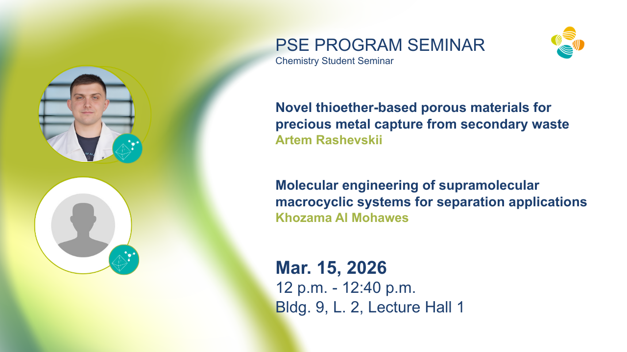 Artem Rashevskii is a current Ph.D. student under the supervision of Prof. Cafer Yavuz at King Abdullah University of Science and Technology (KAUST). Artem obtained his Master’s degree of Chemistry (2023) from St. Petersburg State University, Russia, under the supervision of Prof. Regina Islamova. Artem's research interests focus on the design, synthesis and application of porous organic materials.