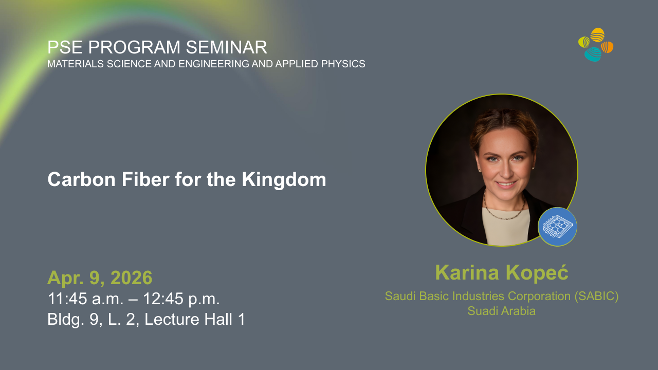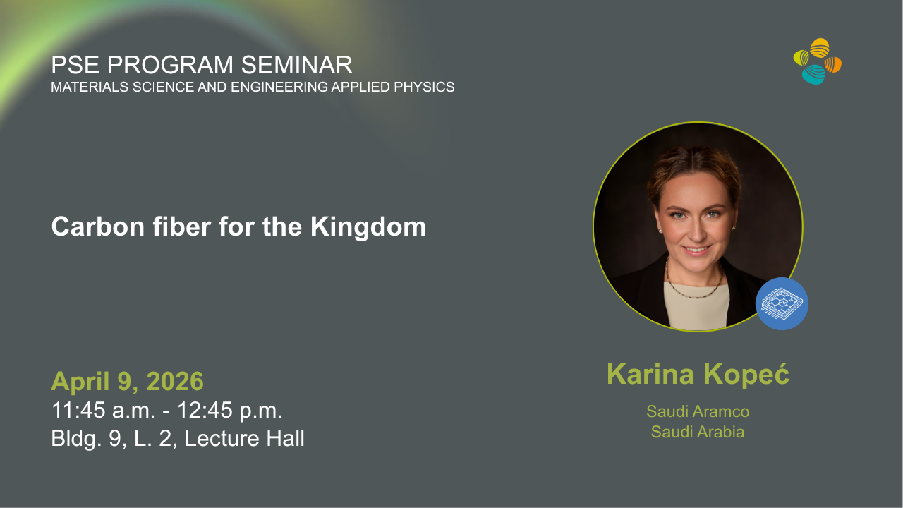 The seminar will also address the economics of carbon fiber production and current industrial trends aimed at expanding carbon fiber adoption into cost-sensitive, high-volume markets. Particular attention will be given to alternative precursor strategies, including Aramco’s focus on pitch-based carbon fibers and interest in polyethylene.