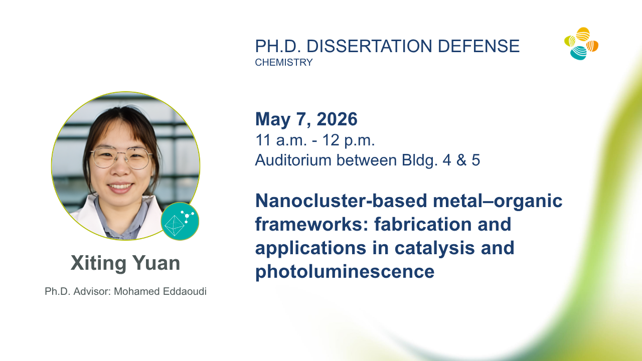 - Ph.D. Advisor: Professor Mohamed Eddaoudi (KAUST Chemistry)