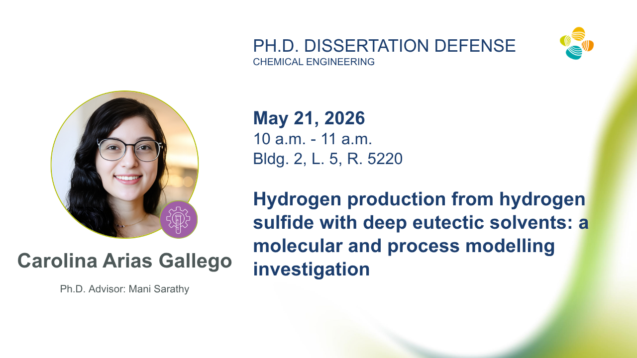 Hydrogen Production from Hydrogen Sulfide with Deep Hydrogen sulfide (H2S) is a hazardous gas primarily produced in the oil and gas industry. Traditionally, it is thermally transformed via the Claus process into solid sulfur. However, the drawbacks of Claus and the need for low-carbon methods of hydrogen (H2) production have led to the recognition of H2S as a hydrogen carrier. In this thesis, the H2S-Iodine (H2S-I2) thermochemical cycle is studied as a novel method for H2S transformation and hydrogen production, based on the reaction of H2S with I2 in aqueous media, forming hydrogen iodide, an intermediate in H2 production. The cycle is characterized by two stepwise mechanisms that depend on the concentration regime: at high H2S concentrations (>1000 ppm), sulfur is a by-product; at low H2S concentrations (<30 ppm), sulfur dioxide is a by-product. Using quantum chemistry calculations, both mechanisms were elucidated in the gas and liquid phases, revealing highly thermodynamically and kinetically hindered rate-limiting steps. On this basis, three deep eutectic solvents (DESs) were selected and evaluated as potential catalysts for the H2S-I2 cycle through gas-phase conformational exploration, including the effect of aqueous media as single-point energy calculations. The results showed that the presence of hydroxyl functional groups and the flexibility of ethylene glycol (EG) fragments in the ChCl:2EG DES enabled the formation of unique covalent interactions, thereby substantially reducing the energy requirements of the rate-limiting step. Later, liquid-phase optimizations, including the ChCl:2EG DES, revealed multiple pathways by which the mechanisms can develop. Finally, the H2S-I2 cycle was simulated, with and without the ChCl:2EG solvent, at an industrial scale for both concentration regimes. In general, the DES reduced water recirculation within the system, thus lowering heating and cooling requirements and improving HI decomposition. The simulations were used in a techno-economic assessment to estimate capital and operational costs, as well as the levelized cost of hydrogen (LCOH) and gas treatment (LCOH2S). As a result, the cost of treating sour gas (60%mol) is 0.09 USD/kgH2S, and the LCOH is 3.02 USD/kgH2, indicating that the process is competitive to green hydrogen production methods. In contrast, treating sour natural gas (10 ppm H2S) via the ChCl:2EG-mediated cycle demonstrates a suitable technology for low-temperature gas sweetening.
