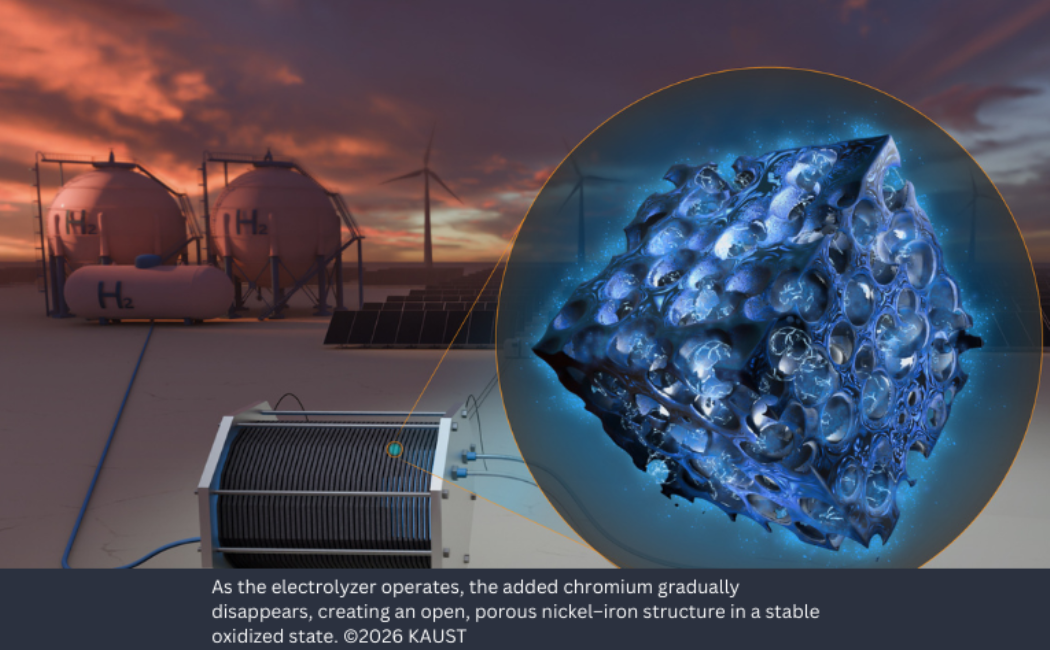 Energy systems can come under enormous strain from sudden changes in renewable generation, such as when sunlight rapidly increases as clouds pass, or when strong gusts hit a wind farm. A clean energy storage technology that handles these power peaks and troughs with ease, converting renewable electricity into green hydrogen, has been demonstrated by researchers at KAUST.