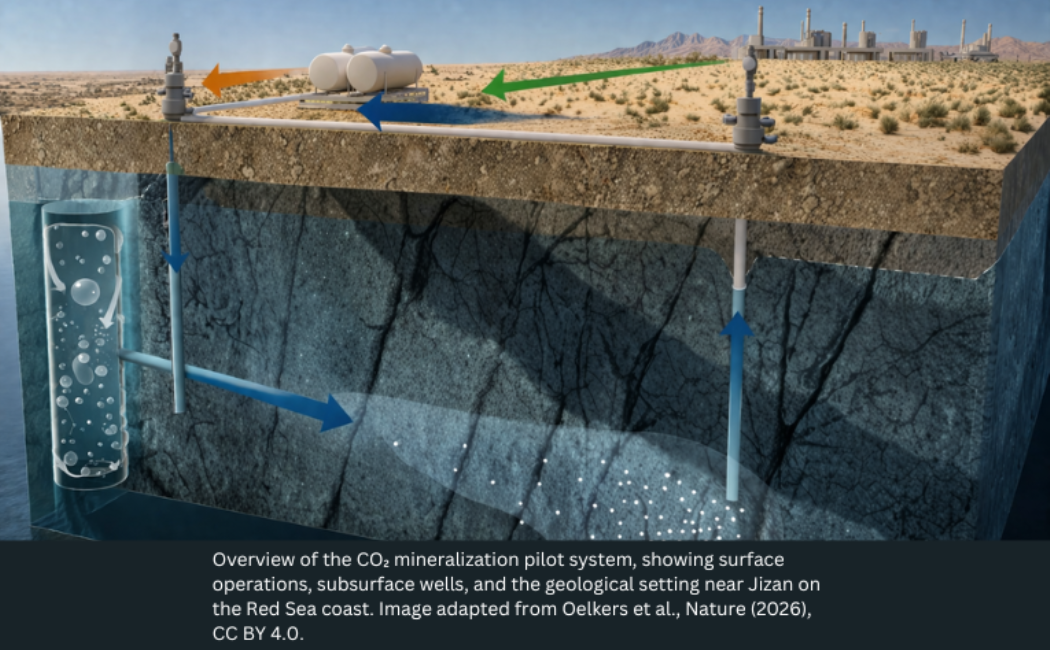 A process to trap carbon dioxide underground in solid minerals, without large volumes of freshwater demanded by existing techniques, could provide a promising carbon removal solution even in the world’s driest regions, expanding the tools available to address climate change. A new study from KAUST, published in Nature, now shows how to store CO2 underground using far less freshwater, opening the door to applications in arid regions.